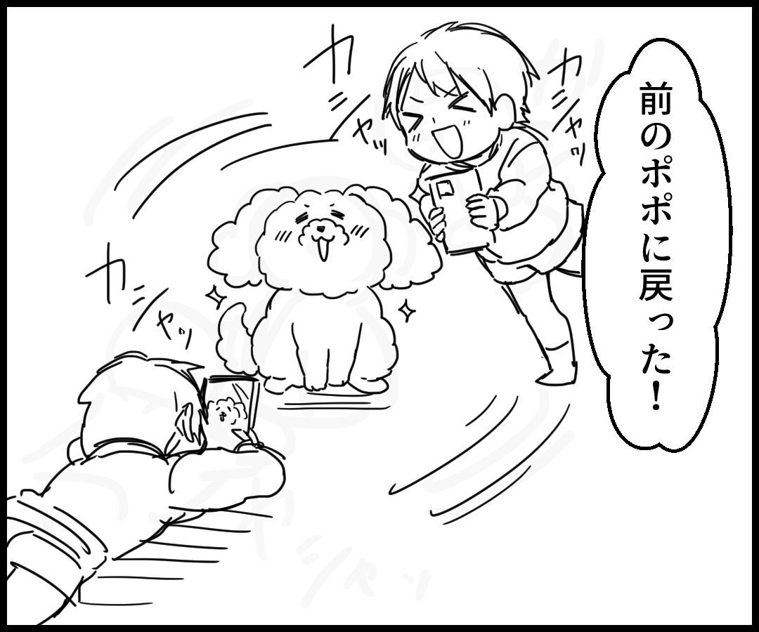\ポポのカサカサ肉球もプニプニになった!/